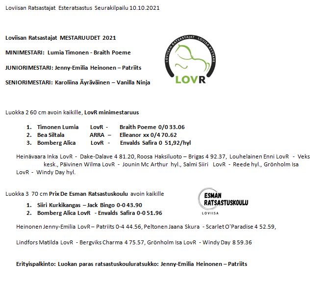 Loviisan Ratsastajat kouluratsastus 17.10.2021