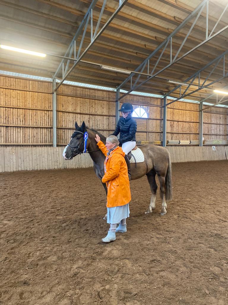 Ratsukkoa onnittelemassa luokan tuomari Kati Henttinen.